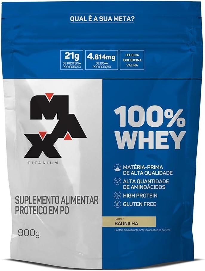 Em até 1x de R$46,34 sem jurosEm até 12x de R$4,38 com juros À vistaR$41,71no Pix100% Whey Refil (900G) – Baunilha – Max Titanium